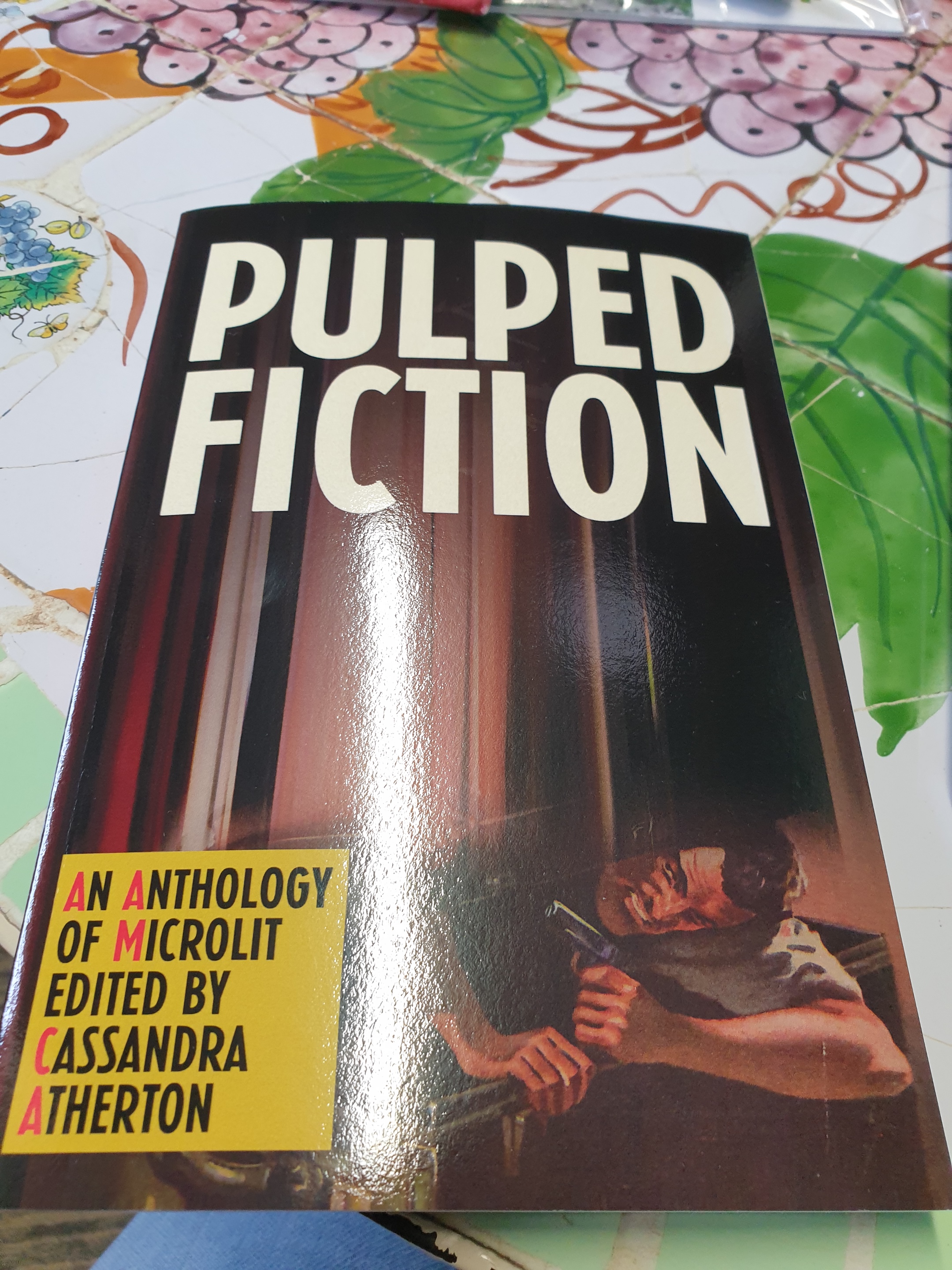 Just received my contributor’s copies of Pulped Fiction: An Anthology of Microlit edited by Cassandra Atherton. Spineless Wonders is the publisher.